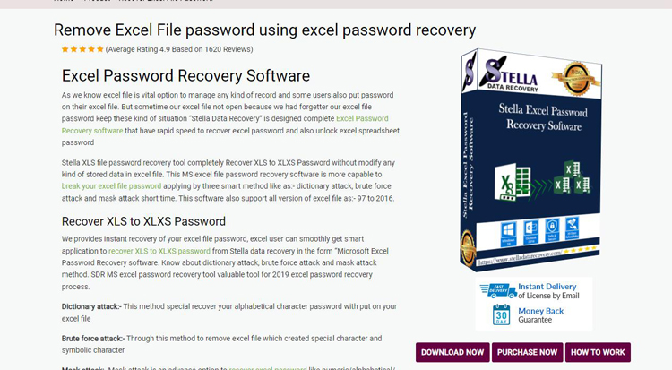 Stella Excel Password Recovery Software是另一個優秀的密碼破解軟體,但是其限制與SysTools相似。雖然也是一個快速破解的工具,但是Stella目前只支援到Excel2016版本的密碼恢復。