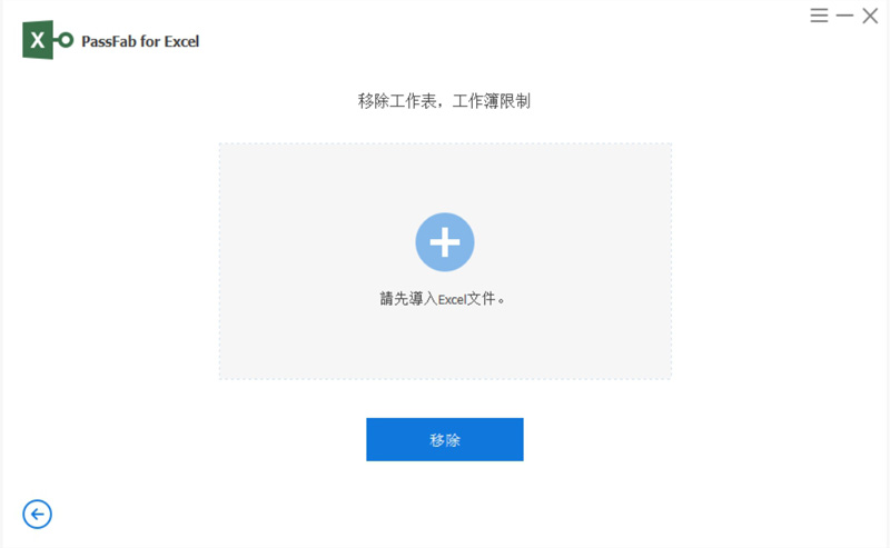 步驟1:下載并且安裝PassFab for Excel,啓動後您會看到以下界面。然後點擊“移除工作表,工作簿限制”進行Excel保護破解工作。 **注意:如果您的檔案有設定【打開密碼的保護方式】,請先點擊“恢復Excel打開密碼”并且先解除您的啓動密碼。