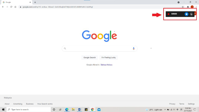 步驟2:此外,您也可以直接按下鍵盤快捷鍵【Windows + Alt + R】來開啓電腦錄影功能。出現以下界面表示螢幕錄製已經開始, 功能表也會顯示您的錄製時長。