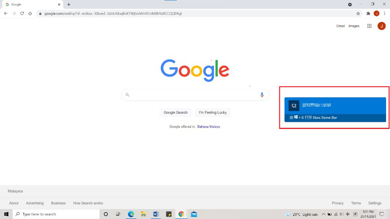 步驟3:停止錄製只需按回快捷鍵【Windows + Alt + R】即可。之後,您可以直接點擊右邊的通知框來查看您的電腦螢幕錄製影片,或者點擊快捷鍵【Windows + G】也可以查看影片的存放位置。