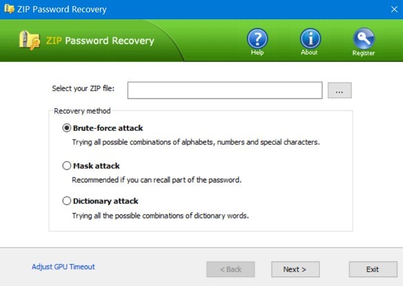 這是一款付費的ZIP密碼破解程式,并且支援各種ZIP檔案的密碼破解。Top Password ZIP Password Recovery提供3種破解模式,當中包含了字典破解、暴力破解和帶掩碼暴力破解。如果您想嘗試使用該軟體來找回丟失的密碼可以嘗試使用試用版本,但是只能恢復小於4個字符的密碼,而且也不提供字典破解的模式。此外,軟體的破解速度相對來説也是較低的,您需要花費更多的時間才能找回丟失的密碼。 優點:
